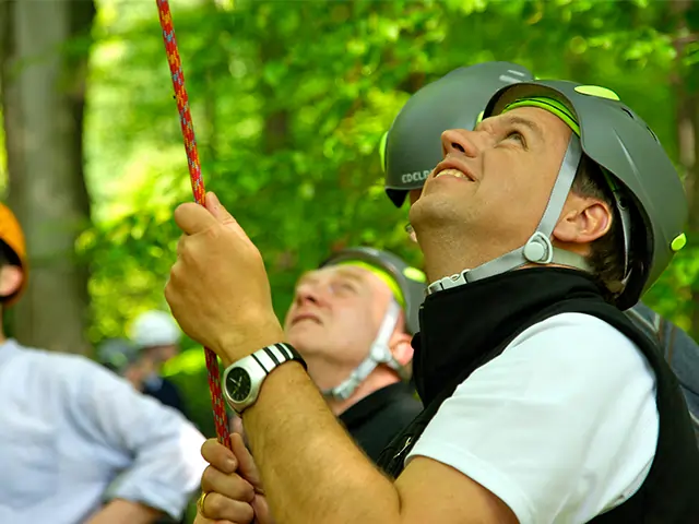 Unsere erfahrenen Trainer*innen sind das Herzstück unseres Angebots. Sie sind nicht nur Expert*innen in Sachen Sicherheit und Hochseilgarten-Aktivitäten, sondern verstehen es auch, Teams zu motivieren und zu inspirieren. Mit einem umfangreichen Wissen über Teambuilding und Gruppendynamik schaffen sie eine Atmosphäre, in der jedes Teammitglied sich einbringen und wachsen kann. Dies gewährleistet ein tiefgreifendes und bereicherndes Teambuilding-Erlebnis.